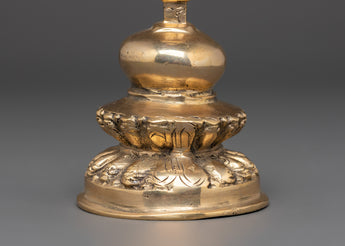 This stupa, crafted from brass, is a unique work of art with profound roots in the Himalayan Buddhist tradition. It holds high spiritual significance and is used for meditation, offerings, and ceremonies. This brass stupa brings harmony, tranquility, and divine energy to your altar or home decor, making it an ideal addition to enhance your spiritual practice and surroundings.