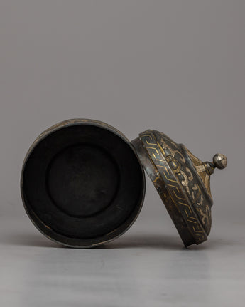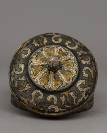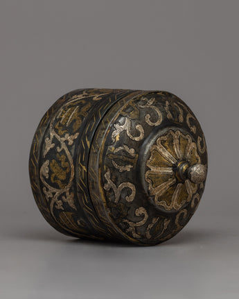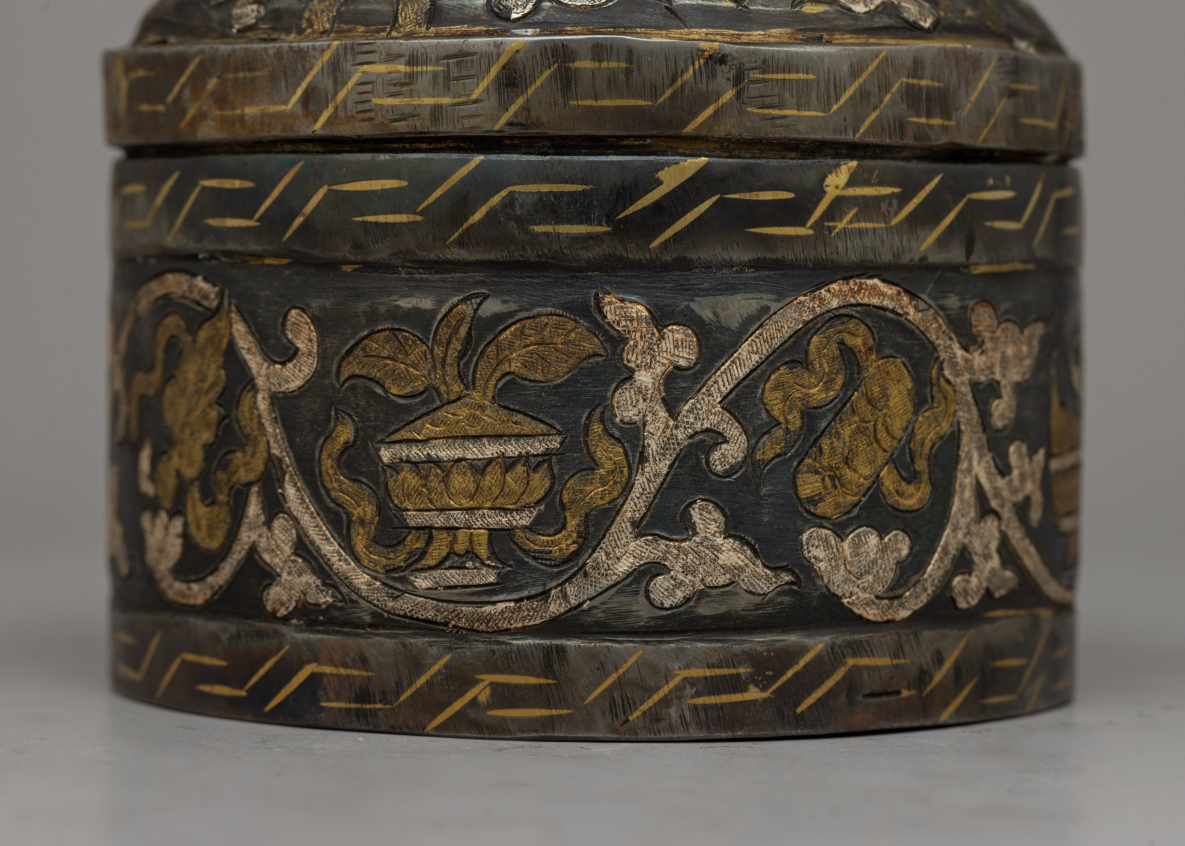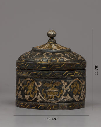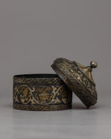 Discover the Buddhist Treasure Chest Box, a unique blend of materials that marries iron, brass, and silver in a harmonious union. Crafted with meticulous attention to detail, this chest box is more than a storage solution; it's a work of art.