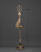 Introducing the Trishul with Phurba, a wonderful ritual object that combines two of Tibetan Buddhism's most powerful spiritual tools and the Himalayan tradition. This sacred item, which stands 83.5cm tall and 14.5cm wide and weighs 4.27kg, is made of iron and features copper, silver, and brass inlay work. The fusion of the trishul (trident) and phurba (ritual dagger) depicts the union of divine might and the piercing of evil. This item, known for its spiritual symbolism and ritual power, is suitable for meditation areas, spiritual ceremonies, and home altars dedicated to protection, cleaning, and energy alignment.