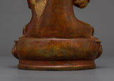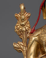 This amazing set has a dazzling and divine appearance thanks to its professional construction from an oxidized copper body and 24K gold plating. Vibrant acrylic and gold paintings accentuate the fine details of Tsongkhapa's and his followers' emotions and the elaborate patterns on their clothing. With a combined weight of 2.736 kg, this pair of statues is a substantial addition to any area devoted to introspection, meditation, or spiritual development.