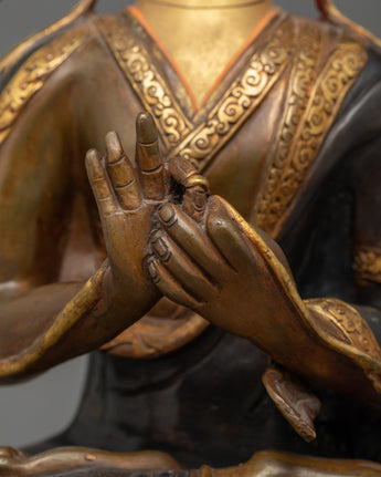 Enhance Your Space with Our Tsongkhapa and His Disciples Oxidized Copper Statue Set