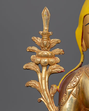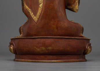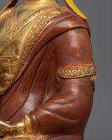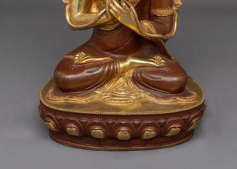 This set, made of high-quality copper and decorated with 24K gold gilding, depicts the revered masters' peaceful expressions and lovely robes. The gold and acrylic paintings showcase their calm demeanor and the intricate textures of their monastic apparel. With a total weight of 9.7 kg, these statues are substantial in both meaning and presence, making them an excellent complement to any meditation room or spiritual setting.