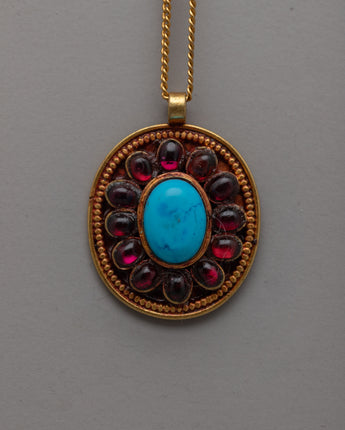 Turquoise and Garnet Locket | Perfect Gift for a Touch of Elegance