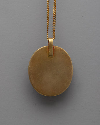 This gorgeous locket with garnet and turquoise epitomizes style and artistry. Thanks to the electrogold plating applied to its copper body by hand, the locket has an opulent and luminous finish. At 4.5cm in height, the locket showcases a gorgeous pattern created by the careful inlay of semi-precious garnet and turquoise stones. The rich red garnet infuses this exquisite piece of jewelry with warmth and passion, while the vivid turquoise provides a hint of tranquility.