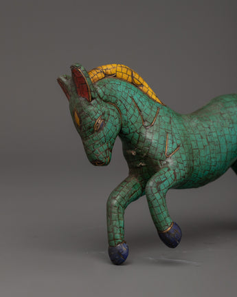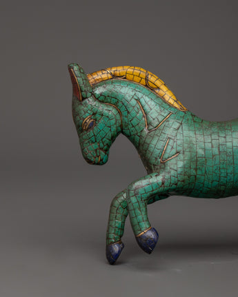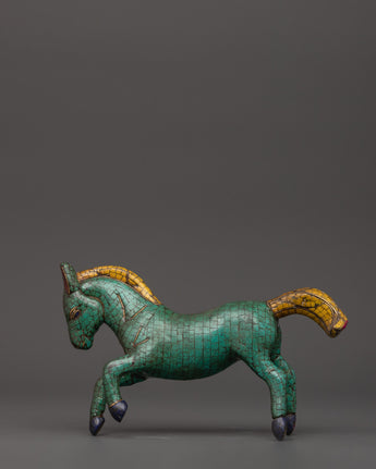 Turquoise Decorative Horse Statue | Handcrafted Decor Symbolizing Strength