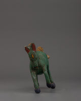 In Tibetan tradition, the horse denotes speed, vitality, and the swift achievement of goals. This figure, often seen as a bringer of good fortune and positive energy, embodies power and determination, attributes connected with the wind horse (seen in Lungta), a prominent symbol in Himalayan spiritual traditions. The golden mane and tail provide a startling contrast, heightening the sensation of heavenly force inside the sculpture.