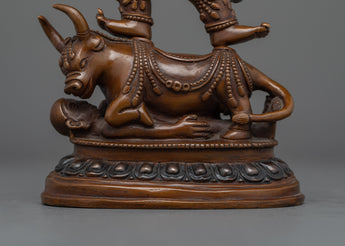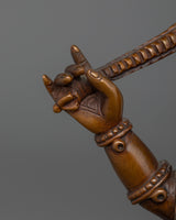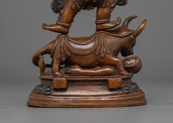 From the intricate designs on Yamantaka's armor to the menacing looks on his face, every aspect of this statue has been carefully carved. A touch of elegance and spiritual importance have been added by the artists' deft accent of the complex elements. The use of corroded copper highlights the artists' fine art in addition to signifying Yamantaka's spiritual character. For those looking for artwork that instills a sense of spiritual strength and protection in their surroundings, this statue is perfect.