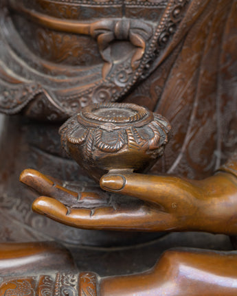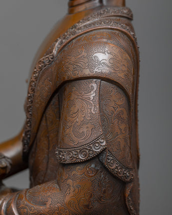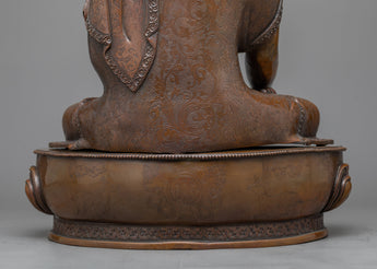 The aged finish on the oxidized copper body radiates a deep sense of serenity in addition to aesthetic refinement. Every element, from the finely crafted features to the elegantly worn finish, brings peace and wisdom into your life. Let this statue serve as a reminder to reflect spiritually, whether it is positioned in your shrine or as the focal point of your house.