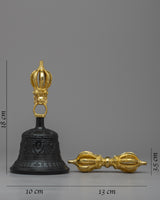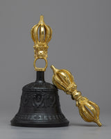 The Vajra and Bell jewelry set is meticulously handcrafted on a copper body, showcasing exquisite craftsmanship. The bell handle and Vajra (also known as Dorje) are intricately designed and adorned with lustrous 24k gold plating. The Vajra represents the indestructible diamond-like nature of enlightenment, while the bell symbolizes wisdom and the feminine aspect of the divine. Together, they represent the union of wisdom and skillful means in Buddhist practice. This stunning jewelry set not only showcases the beauty of the Vajra and Bell but also carries symbolic significance, making it a meaningful and auspicious accessory for those seeking a connection to Buddhist teachings and spiritual practices.