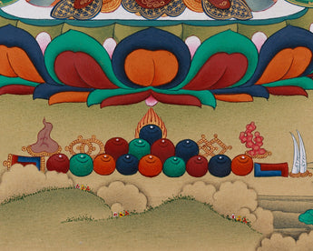 As you requested for consecrations/blessings, we can take the thangka to nearby monasteries/Rinpoches from the Boudha Stupa. We kindly ask that you contribute $50 to the monasteries for these blessing/consecration services.