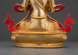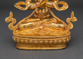 From the delicate patterns on Vajradhara's robes to the expressive features on his face, every aspect of this statue has been skillfully carved. The sculpture has been given elegance and spiritual meaning by the artists' diligent attention to detail. In addition to signifying the sacredness of Vajradhara, the gold gilding highlights the artists' skilled work. For those looking for a work of art that captures the spirit of enlightenment and spiritual understanding, this statue is ideal.