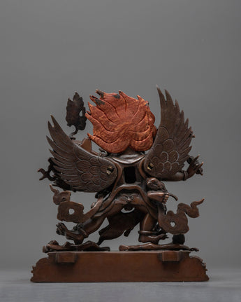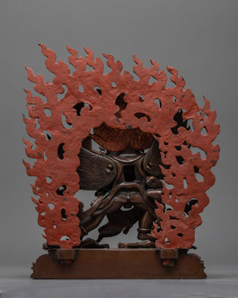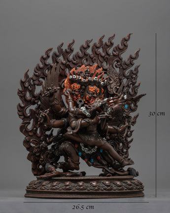 Experience the Vajrakilaya Oxidized Figurine, a representation of spiritual strength and ferocious force. This statue, which was carefully constructed with great attention to detail, is a tribute to the profound lessons of Vajrakilaya. With its impressive appearance and height of 11.8 inches and weight of 6.39 kg, it certainly draws attention. This figurine, which is made of oxidized copper, has a strong, old atmosphere about it. Set it up in your sacred area and let its energy to lead you to enlightenment.