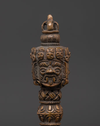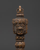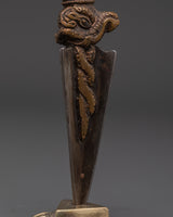Vajrakilaya is regarded as a powerful deity in Tibetan Buddhism, recognized for eradicating spiritual impediments and bad energies. The phurba dagger is a sacred item used in ceremonies to invoke protection, purification, and transformation. Incorporating this skillfully carved Vajrakilaya Phurba into your spiritual practice aids in the removal of barriers and promotes your road to enlightenment and inner serenity.