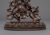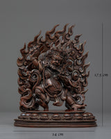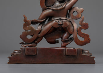 Introducing our Vajrapani Handmade Oxidized Small Statue, which was skillfully handmade in Patan, Nepal. Crafted from oxidized copper, this magnificent object perfectly captures the rich legacy of Nepalese metalworking. Vajrapani is shown in a dynamic and commanding position, signifying his role in overcoming challenges and offering spiritual protection. Vajrapani is the embodiment of strength and protection. Our artists' extraordinary talent is showcased by the statue's intricate features and ferocious face. The oxidized finish gives the statue a timeless spiritual depth.
