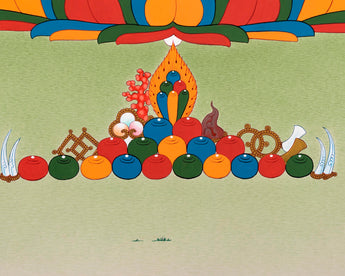 As requested for consecrations/blessings, we can take thangka to Monasteries/Rinpoches from nearby Boudha Stupa. We kindly ask you to offer $50 for the monasteries for blessings/consecration services.