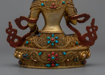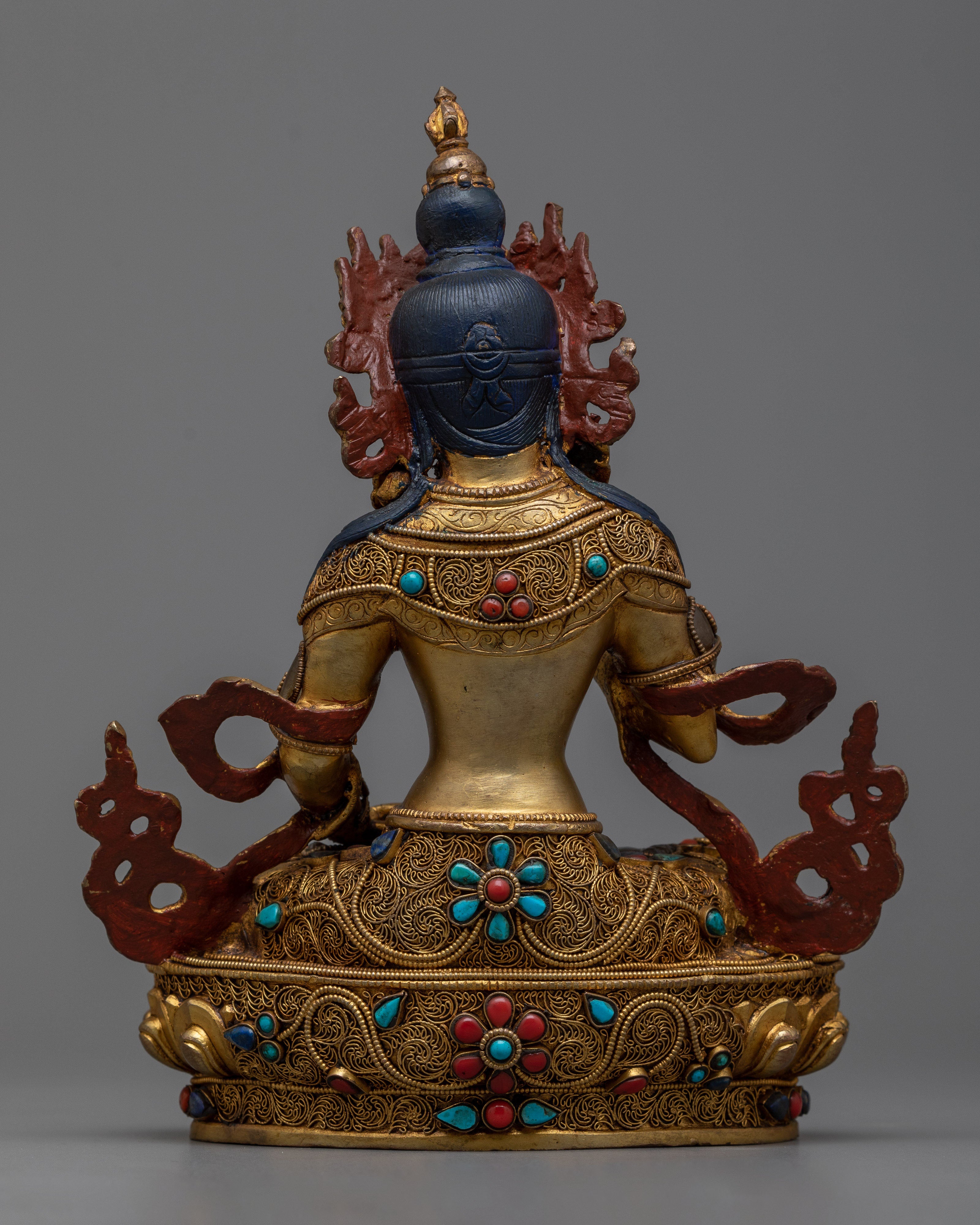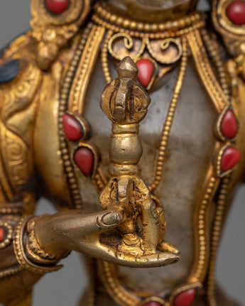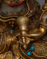 Introducing the Vajrasattva Bodhisattva Statue, a dazzling representation of purity and spiritual transformation. Crafted meticulously from exquisite crystal stone, this divine sculpture exudes a transcendent beauty that lifts the soul. This statue, adorned with luxurious 24k gold plating crafted from durable copper, represents timeless elegance and enduring strength.