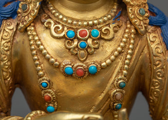 The profound presence of Vajrasattva embodied wonderfully in this exquisitely carved statue, will grace your spiritual refuge. Every curve and detail of this artwork screams superb craftsmanship, encapsulating the essence of Vajrasattva, the Buddha of Purification.