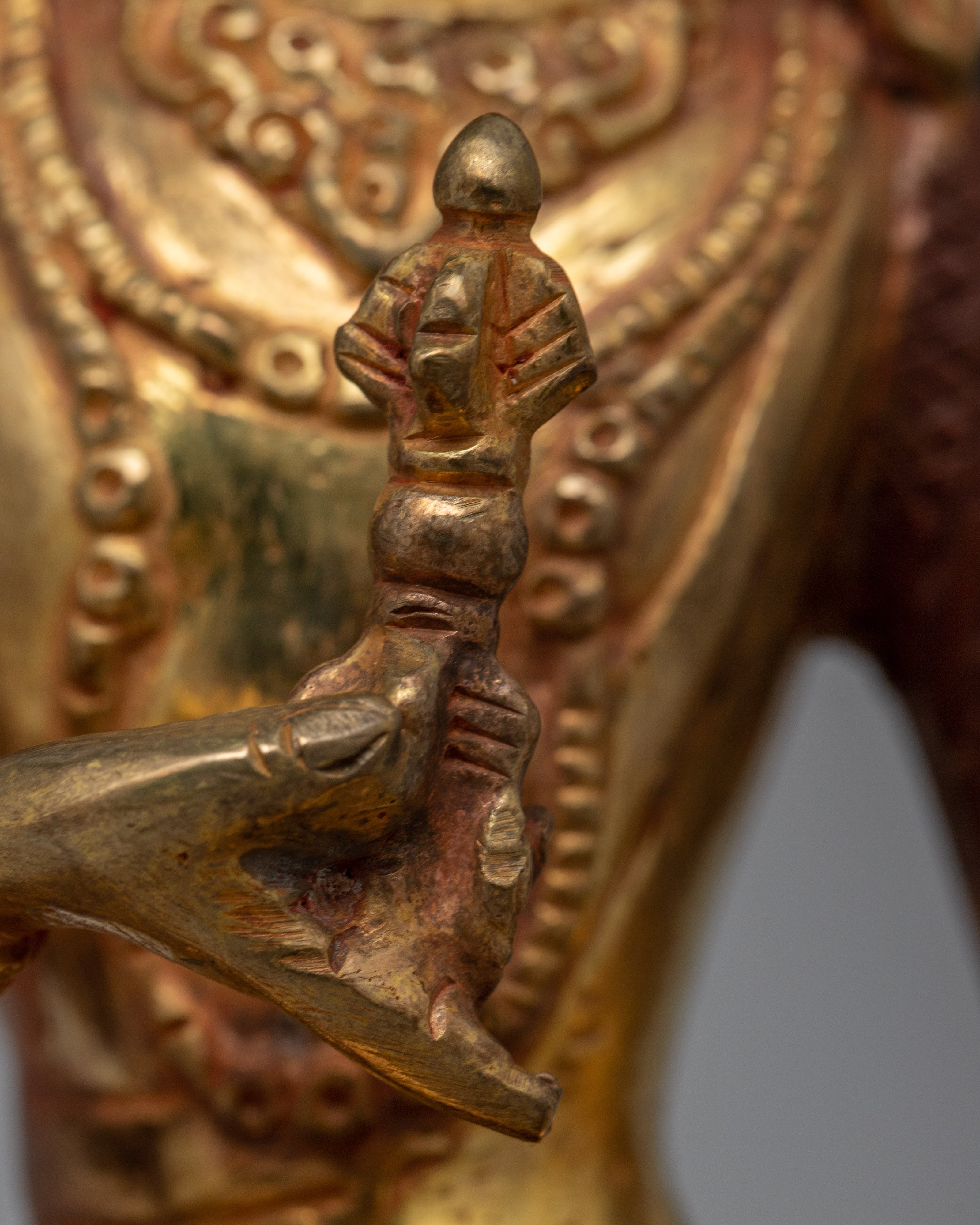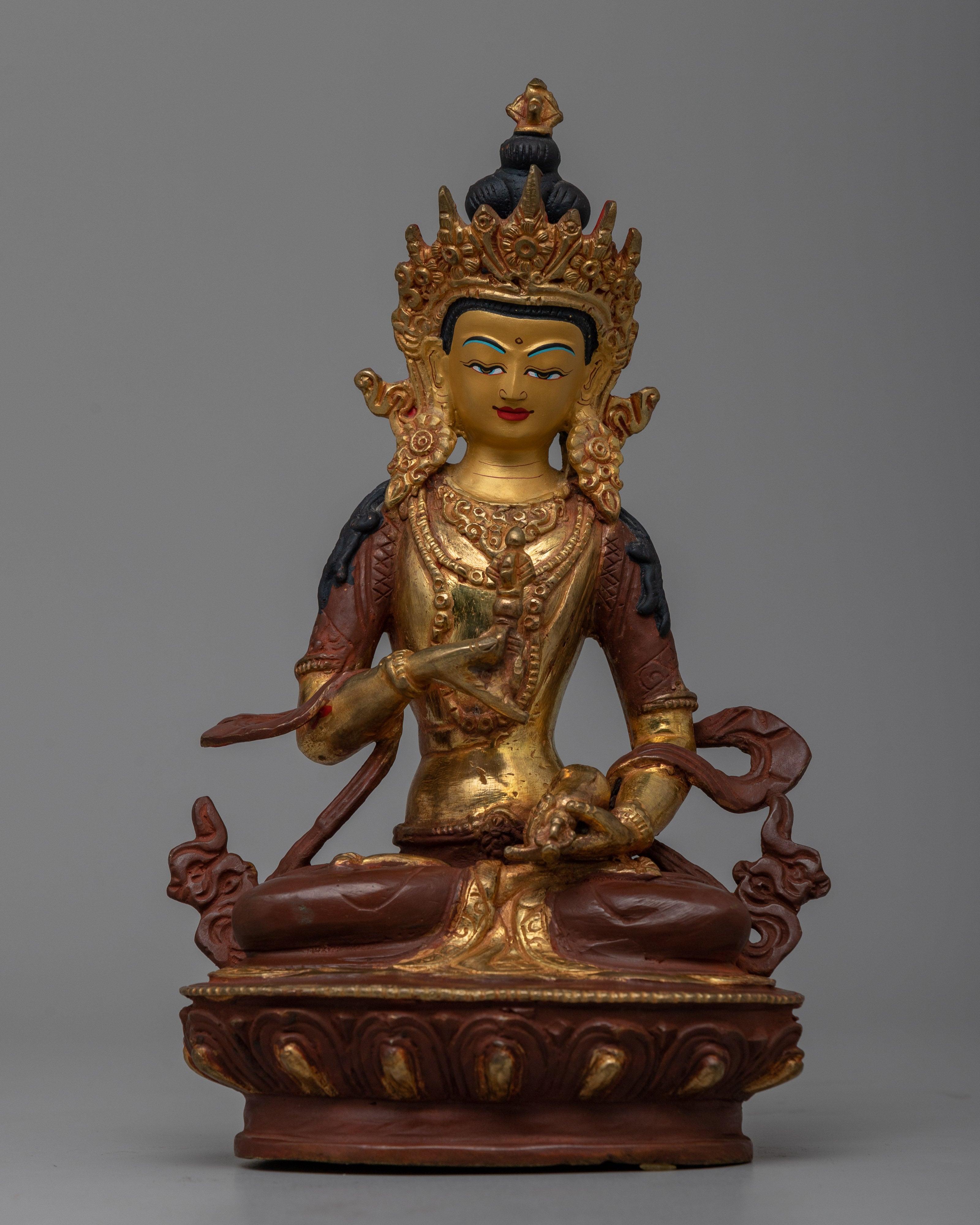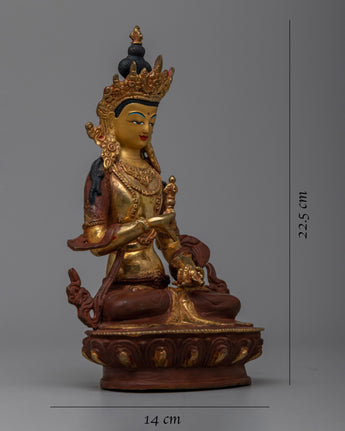 More than just a statue, our handcrafted copper and 24k gold Vajrasattva Gold Statue is an enchantment. With a height of 22.5 cm, it represents spiritual brilliance and serves as a pristine lighthouse on your path to self-realization and spiritual awakening.