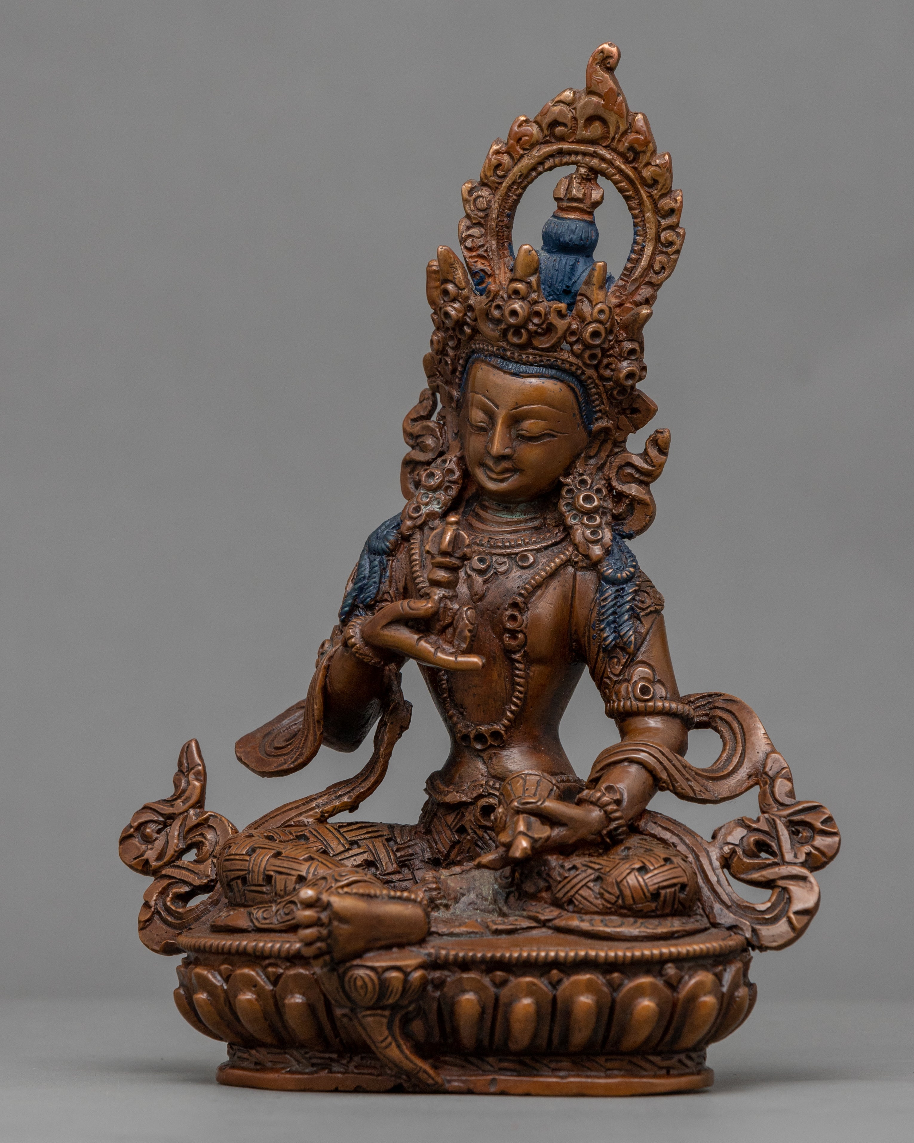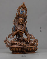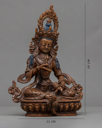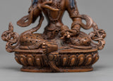 The Vajrasattva Mantra Text Practice Statue was carved by hand in our studio using the skills handed down to us for years. We molded the figurine using oxidized copper, intricately carved to accentuate the statue's intricacies. In Tibetan, Vajrasattva is sometimes referred to as Dorje Sempa. The deity is perched on a moon disc on a lotus, clutching a vajra in his right hand and a bell in his left. He had a contented look on his face. This figure can be used in various Buddhist rituals and meditation exercises.