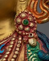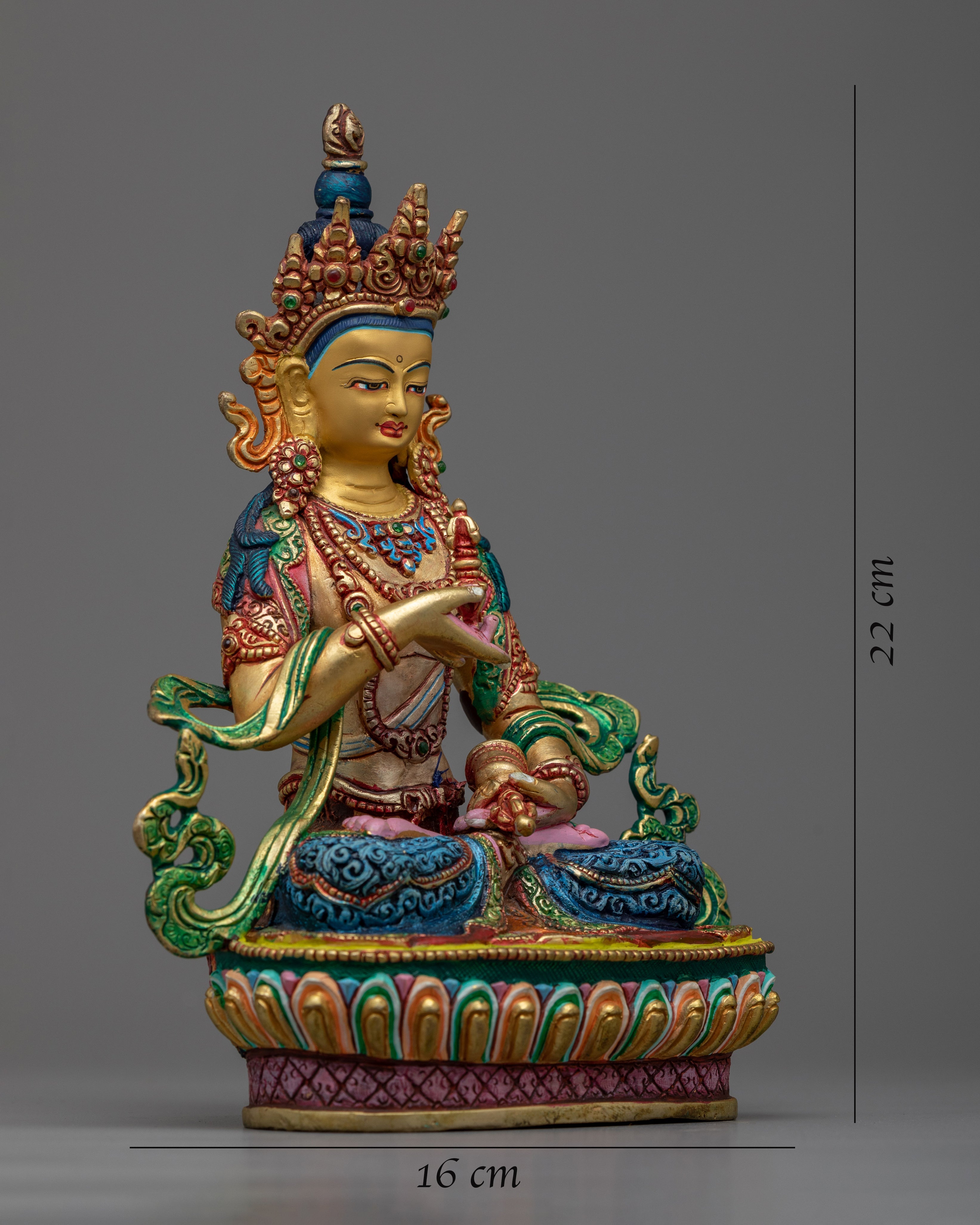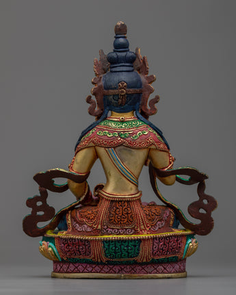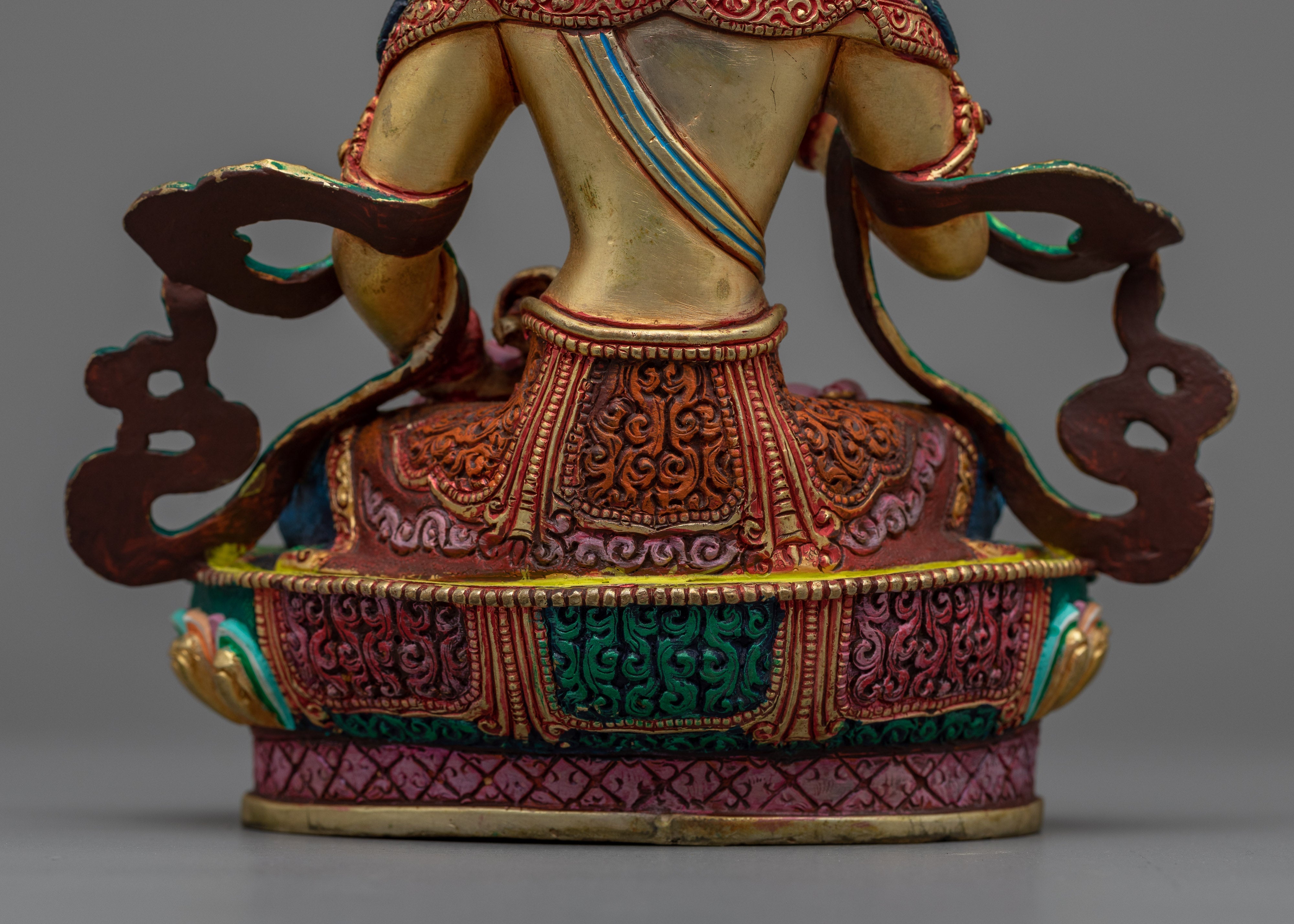 This statue's sturdy copper core is highlighted by the bright brilliance of 24k gold, displaying its complex design and unmatched craftsmanship. The exquisite intricacies and spiritual symbolism are captured in the delicate 24k gold and acrylic paintings, making it a center point for any meditation space or altar.