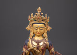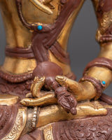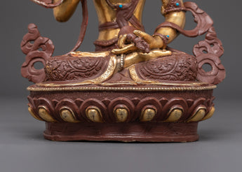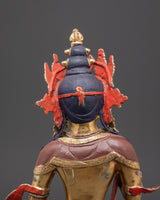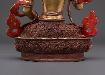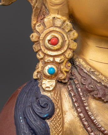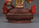 The statue, made of copper and plated with bright gold, is embellished with imitation coral and turquoise stones, which add to its sacred beauty and symbolic richness. Whether displayed in a meditation room, home altar, or temple, this exquisitely carved piece exudes not just visual beauty but also a potent spiritual force steeped in Himalayan Buddhist tradition.
