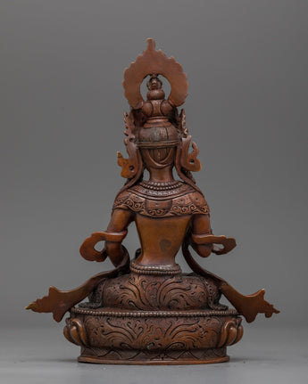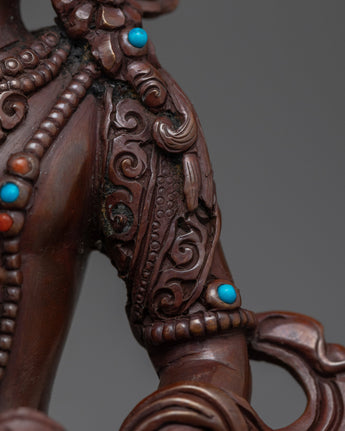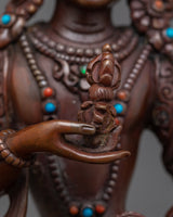 This statue, weighing 0.96 kg, is made with care and is sturdy, so it will be a treasured addition to your collection. The beautiful combination of oxidized copper represents the Vajrasattva's transformational power and ageless purity. This statue is great for anyone who practices Buddhism, enjoys meditation, or appreciates beautiful art. It will help you become more connected to the teachings and benefits of Vajrasattva.