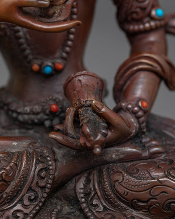 Experience the tranquil presence of this Vajrasattva Purity Deity in Oxidized Statue, a wonderful addition to your spiritual or living space. Flawlessly made from an oxidized copper body, this statue is 20.5 cm tall. Your meditation or shrine environment will seem more serene because of the wonderful details that perfectly capture the essence of Vajrasattva with a serene expression and beautiful characteristics.