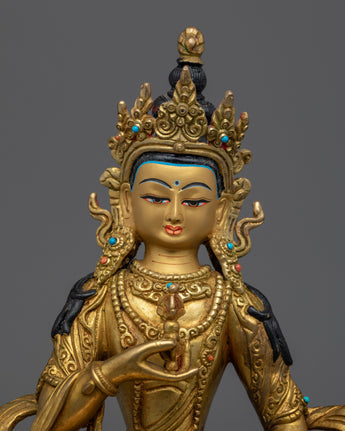 Vajrasattva Sculpture Gilded in Gold | Handmade in Nepal, Himalayan Buddhist Art