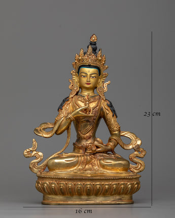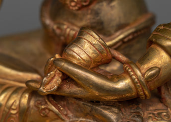 Savor the heavenly presence of the beautifully sculpted Vajrasattva Yidam Statue on a shiny copper body. This holy emblem is given life by each expertly crafted stroke, giving it a deep spirituality and classic elegance. Embellished with an extravagant coating of 24k gold plating, it exudes luxury and purity, representing the pinnacle of enlightenment.
