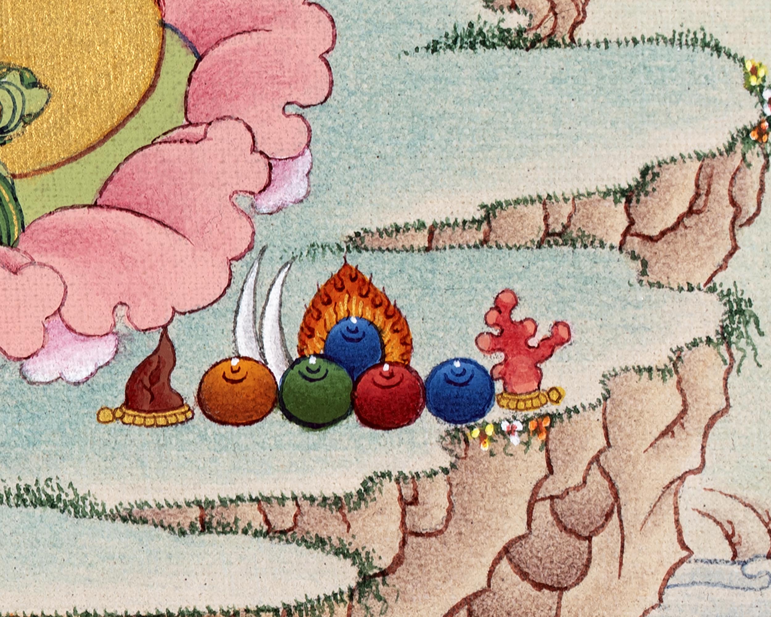 As requested for consecrations/blessings, we can take thangka to Monasteries/Rinpoches from nearby Boudha Stupa. We kindly ask you to offer $20 for the monasteries for blessings/consecration service.