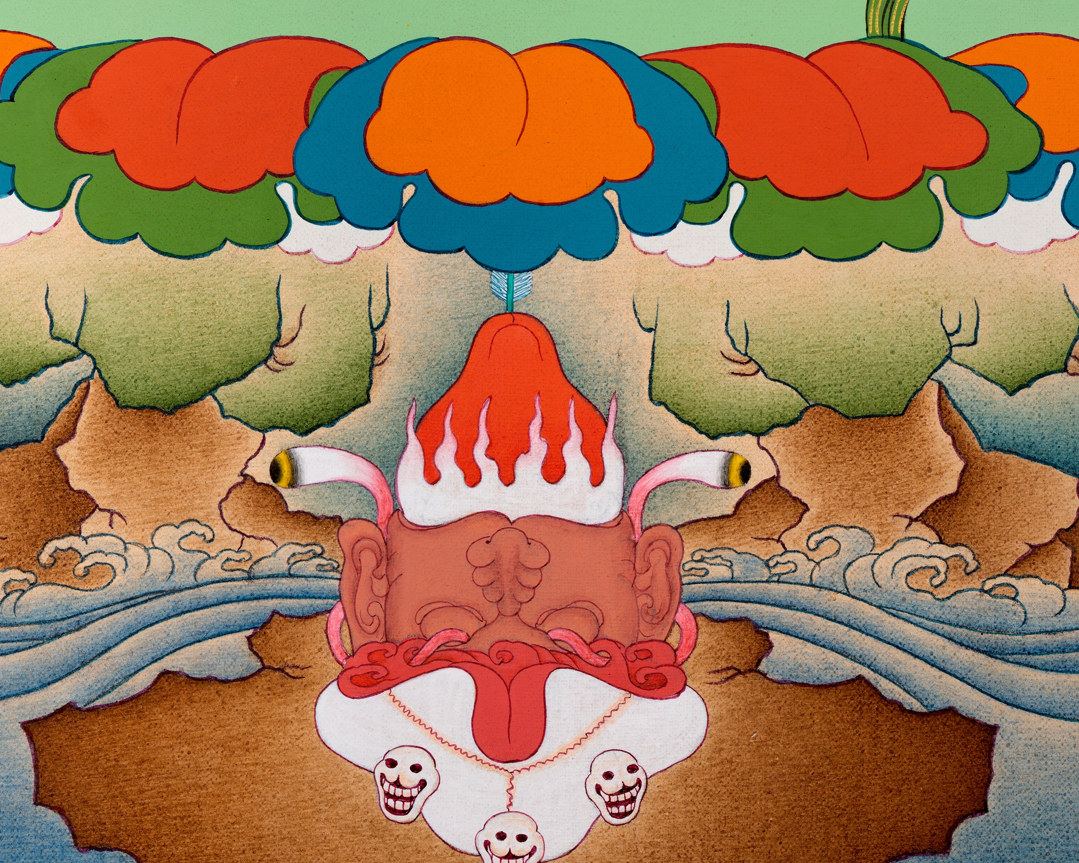 THIS THANGKA IS HAND-PAINTED IN THE TRADITIONAL KARMA GADRI STYLE, AND THE QUALITY IS HIGH