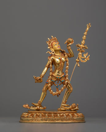 Traditional Himalayan Gold Statue Vajrayogini Tibetan Tantric Deity in Dance Posture