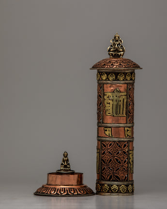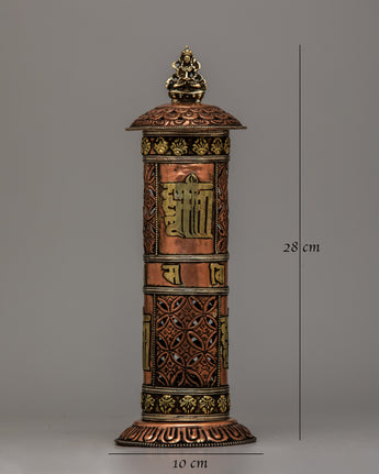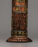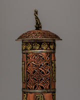 The Vertical Copper Incense Burner is an attractive and useful way to fill places with the calming scent of incense. It's ideal for promoting meditation sessions, religious rituals, or just setting a peaceful mood. For both spiritual seekers and enthusiasts, its classic style and fine craftsmanship make it a treasured piece.