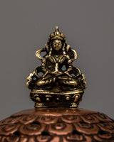 A finely created object, the Vertical Copper Incense Burner is intended to enhance the custom of smoking incense. It is a beautiful and useful addition to any sacred space or meditation area, standing at an amazing height of 28cm and expertly crafted on a copper body.
