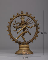 Presenting the Shiva Nataraja Statue, an exquisitely carved sculpture that embodies the profound and dynamic nature of Lord Shiva in his cosmic dancer form. This beautiful statue, which weighs 0.67 kg and is 20 cm in height by 15 cm in breadth, is made of brass. Shiva is depicted in his Nataraja form, dancing the Tandava dance, which symbolizes the cycles of creation, preservation, and destruction, thanks to the exquisite details.