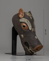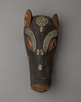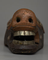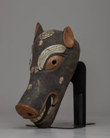 The antique wooden pig mask is proof of the Himalayan region's rich cultural legacy. This mask is beautiful to look at and has historical value because of its careful attention to detail throughout construction. This is vintage and it was collected during 1980's from Kathmandu brought down from Himalayan region for barter and trade.