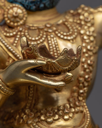 With our Mahasiddha Virupa sculpture, you may add a sense of spiritual profundity to your area. It is delicately fashioned from solid copper and gleams brilliantly due to the exquisite application of 24k gold plating. The acrylic paints' perfection matches this composition, providing levels of depth and interest. It readily bridges the gap between physical beauty and spiritual resonance for individuals who appreciate both art and enlightenment.