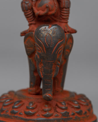 Savor the enduring charm of the Garuda Statue, an exquisite representation of Hindu mythology carefully sculpted by hand on oxidized copper. This 11-cm-tall work of art perfectly portrays the regal essence of Garuda, Lord Vishnu's beloved ride. Every element of the monument exudes beautiful craftsmanship and spiritual importance, meticulously made by competent artists. The copper body enhances the statue with a sense of antiquity and veneration, adding a rustic beauty.