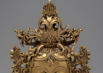 The White Tara Wall-Hanging Buddha Mask is a remarkable fusion of spirituality and artistry. Its brass body, standing at 30 cm in height, exudes a timeless charm.