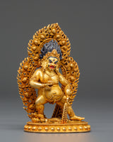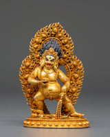 Dzambhala is a protective deity associated with wealth and prosperity. Many forms and traditions are associated with this wealthy deity, but he is usually depicted as yellow in color and holding a mongoose in his left hand. This statue has accurate traditional iconography and fine details.