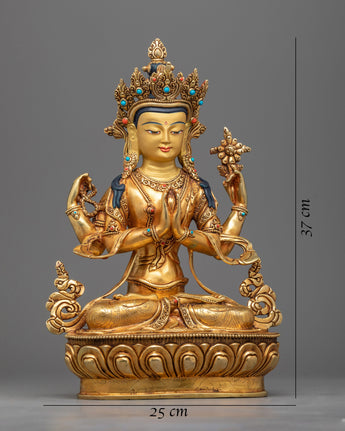 Grace Your Space with the Serene and Compassionate Avalokistesvara 24K Gold-Gilded Copper Statue
