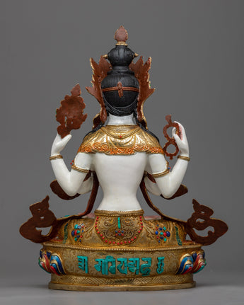 Luminous White Chenrezig Copper Sculpture - Icon of Loving-Kindness