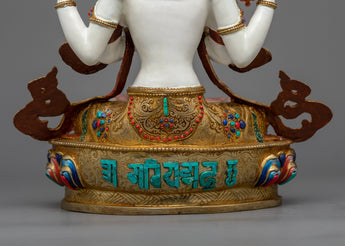 White Chenrezig Statue | 24K Gold Gilded Embodiment of Universal Compassion