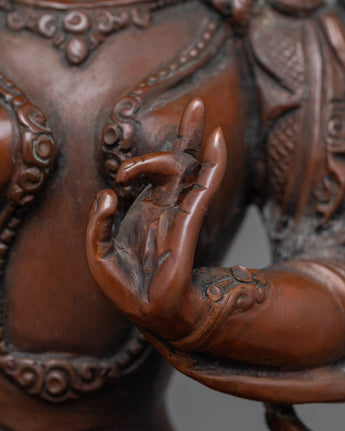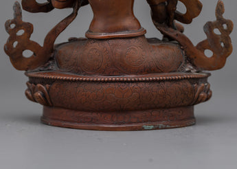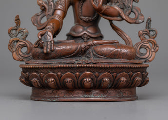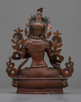 With the White Dolma Statue, which is precisely sculpted to exude the enlightened features of the beloved Bodhisattva, you can discover the embodiment of compassion and wisdom. Crafted from a body of oxidized copper, this beautiful statue exudes a sense of peace and enlightenment, beckoning you to commune with White Dolma's profound wisdom and caring heart. This statue, with its fine artistry and minute details, is a powerful representation of wisdom and compassion.