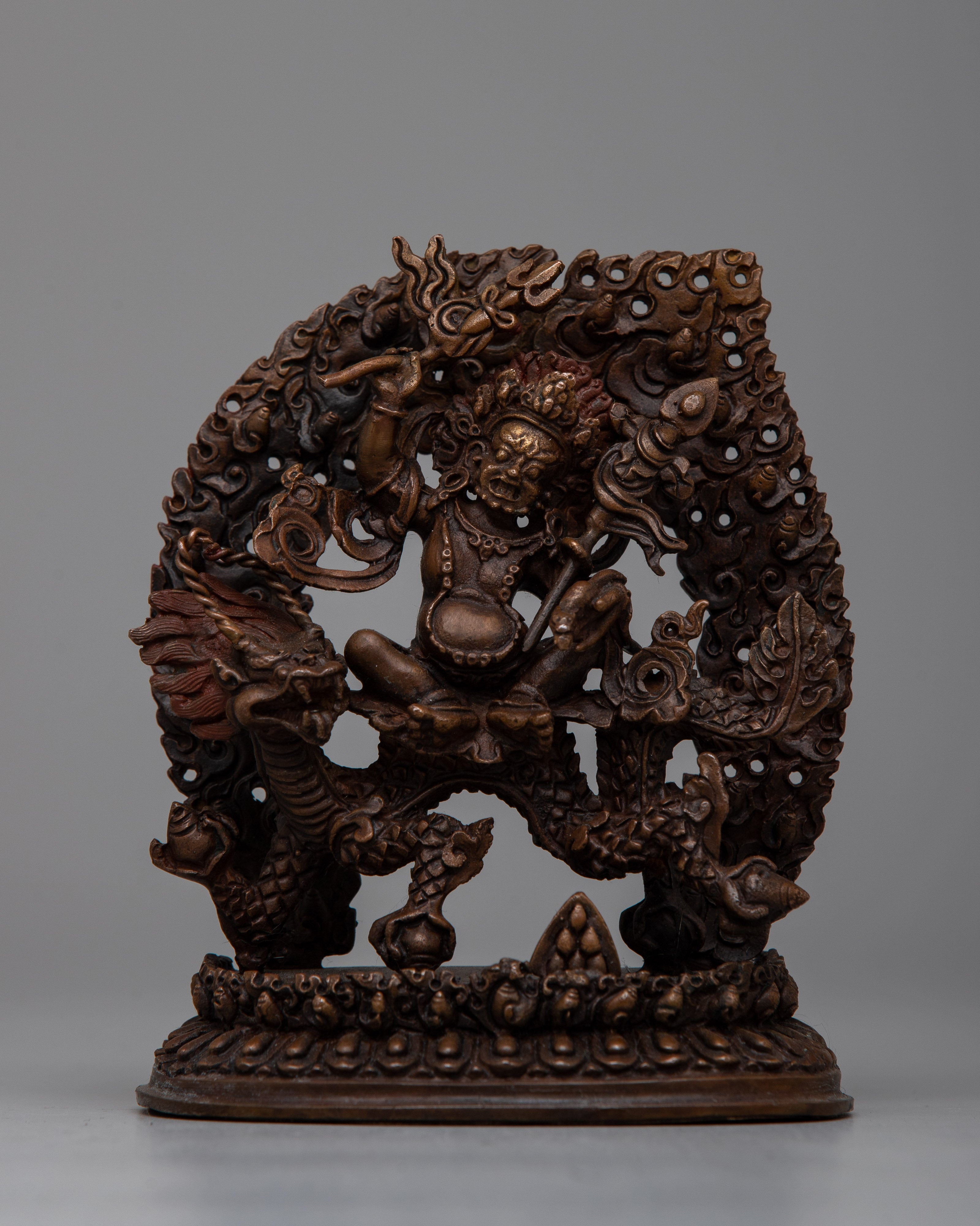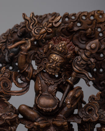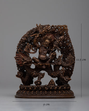 Dzambhala, seen as the incarnation of Kubera, the Lord of fortune, is a venerated figure in spiritual traditions, symbolizing abundance, prosperity, and fortune. Dzambhala, known for his ability to remove poverty and offer financial stability, is a celestial defender and benefactor for those seeking riches and spiritual fulfillment.