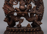 A shrine to heavenly grace and prosperity, the White Dzambhala Machine Made Statue was carefully constructed using sophisticated technology on an oxidized copper body. Standing 11.5 cm tall, this statue embodies the essence of the highly adored White Dzambhala deity, signifying riches, abundance, and purity.