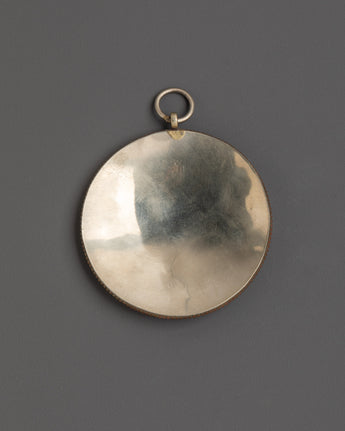 This Handcrafted White Metal Melong Mirror is a powerful spiritual artifact designed to foster wisdom, clarity, and insight. Made from a combination of white metal and copper, this mirror measures 9.5 cm in height and 7.5 cm in width. Weighing just 0.034 kg, it is both lightweight and substantial, making it ideal for ritual use or as a meaningful decorative piece. The mirror symbolizes the clarity of the mind, helping to remove illusions and dispel ignorance.