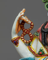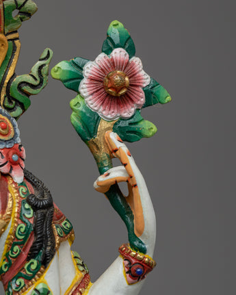 The White Serene Chenresig Statue, which measures 12.2 inches, will help you embrace compassion and calm. This gorgeous statue is made of copper and is gilded with 24K gold. It has beautiful paintings in gold and acrylic that highlight Chenresig's serene expression and flowing robes. Any spiritual or meditation place would benefit greatly from the amazing artistry that embodies Chenresig's loving presence.