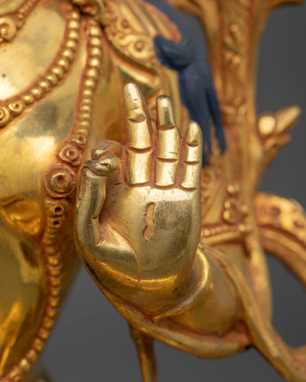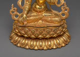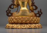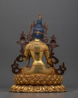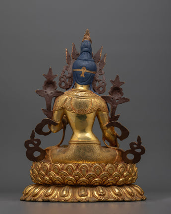The White Tara Artistic Elegance Handwork statue, skillfully made in Patan, Nepal, exudes beautiful grace. Crafted from pure copper and adorned with 24K gold, this statue exemplifies the illustrious legacy of Nepalese metalworking. White Tara is portrayed in a calm and contemplative pose, signifying her function in bringing about relief from pain and extending life. She is the embodiment of compassion and healing. Her serene look and elaborate gown patterns demonstrate the expert craftsmanship, and the statue's stunning appeal and spiritual importance are further enhanced by vivid gold and acrylic paintings.