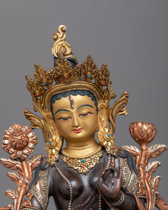 Discover the Healing Power of the White Tara Buddhist Goddess, Embodied in this Stunning Gold and Silver Gilded Statue